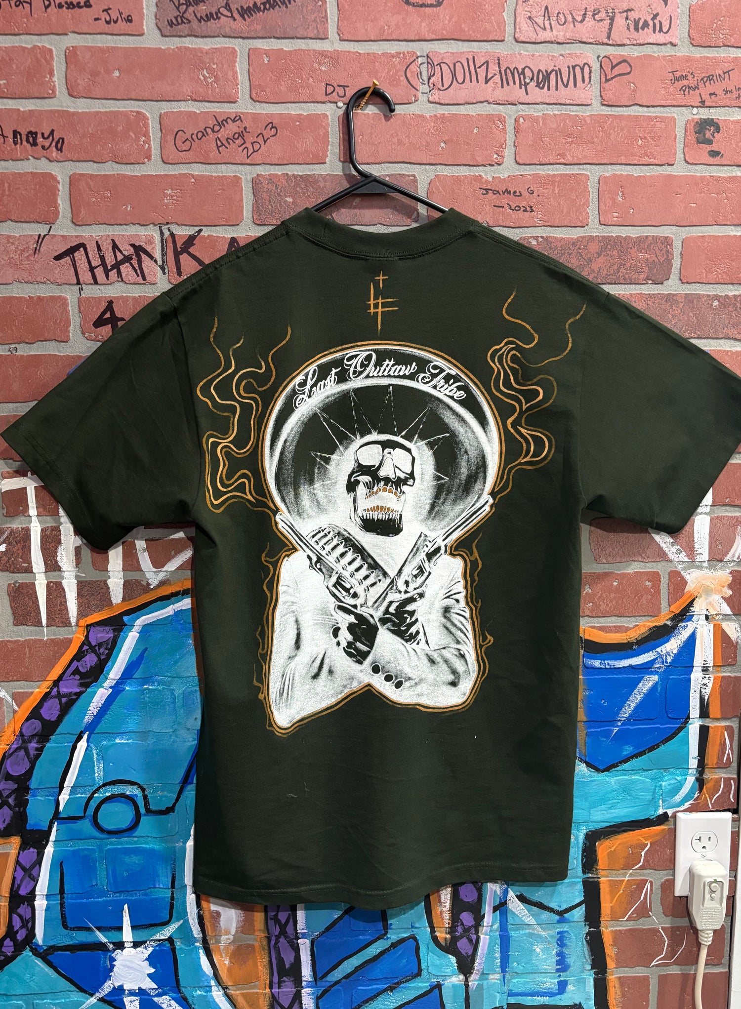 The Last Outlaw Tribes original logo screen printed on to a variety...